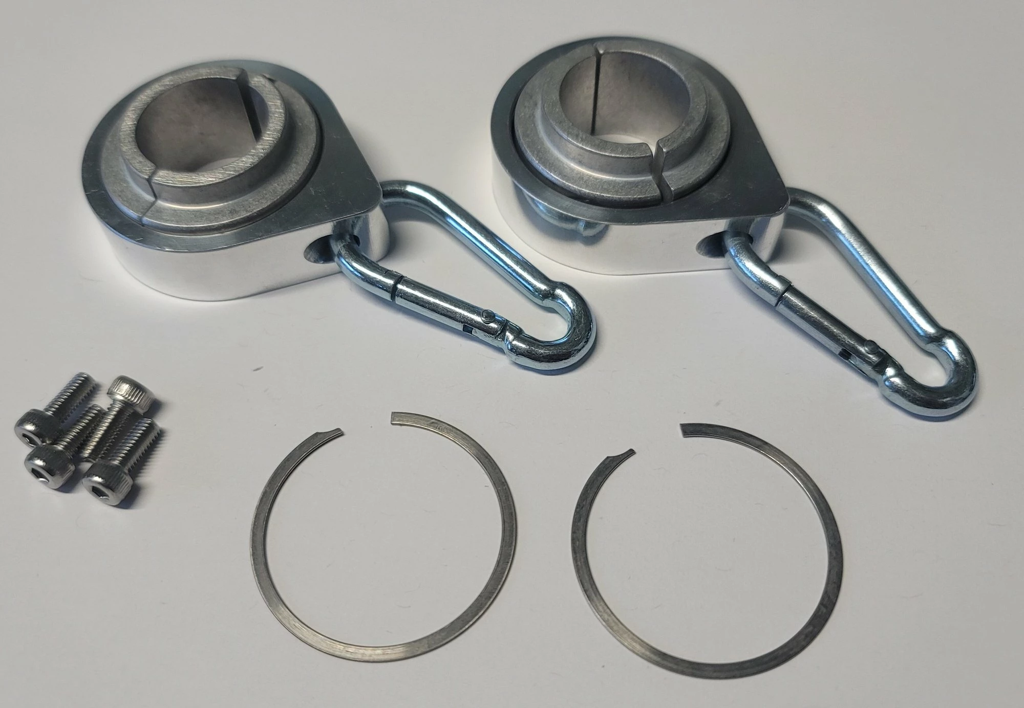 Here is our new top-of-the-line flag clip for our top-of-the-line 187 whips. These are machined here in the USA and custom-made of our 187 series whips. 360 degrees of rotation keep your flags from getting tangled up in the wind. These are the nicest flag clips on the market. Can hold up to a 3 x 5 flag.  Must specify 6 foot or 4-foot whips. (Sold in pairs)