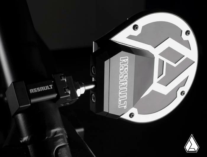 Assault Industries side mirrors are compatible with a wide variety of vehicles and are currently in use on UTVs, offroad race trucks, and Jeeps. The mirrors can be mounted using available 1.5, 1.75, 1.875 (CanAm Maverick X3), or 2-inch clamps and can also be custom mounted.