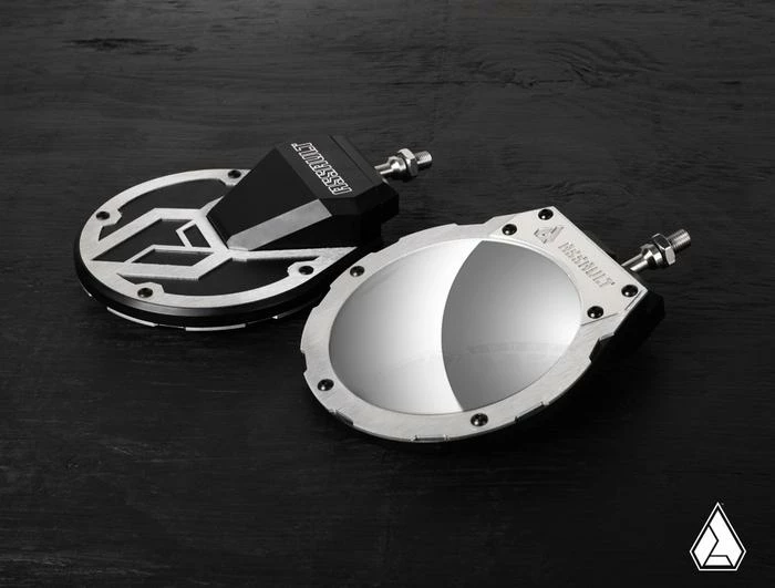 The Assault Industries Sidewinder convex side mirrors provide an enhanced field of view and feature an all-new round design. The Sidewinder convex side mirrors are constructed primarily from CNC machined 6061 T6 billet aluminum and are completely rebuildable with basic tools. The new round design is highly customizable. The front and rear bezels can be replaced with available colored bezels or the end-user can have their raw bezels finished themselves for a more customized look.