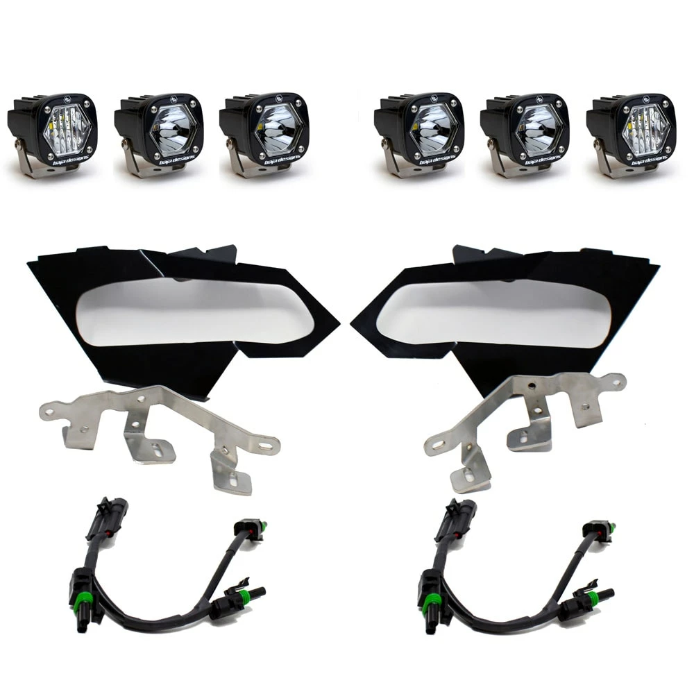 Our team spent copious amounts of time at the R&D table with this kit, our end result was creating a light that gives you the performance that you have come to expect from Baja and the style your Can-Am X3 deserves. With the low amperage draw of the six S1 lights, this kit doesn’t draw a substantial amount of power over your stock lights, though your driving experience is enhanced. With our plug-n-play wiring system and precision cut and bent brackets, installation is a breeze, too.