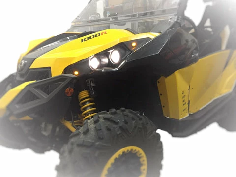 The plug-and-play turn signal kits from Corbin Custom Works are the easiest and highest quality kits for the Can-Am’s “Original” Maverick 1000R UTVs! Our signal kits achieve a completely OEM rear indicator look by utilizing the factory rear tail lights. We include four super-bright 3/4″ LEDs to provide over 180° of front indicator visibility! All turn signal kits also have hazard rocker switch/functionality upgrades available. Each Corbin Custom Works turn signal kit comes with thorough, easy to read and illustrated, installation guides making installation a snap!