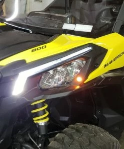 Every turn signal kit for the Can-Am Maverick comes with the option to upgrade from 3/4″ Amber indicators to our Ghost Signature Light replacements featuring dual-color, dual-functioning, lights. The OEM lights come with just three White LEDs at the base that shines up the light “brow”. Our all-new Ghost Signature Lights take these multiple steps further with dual-color White/Amber LEDs running the entire length of the light (not just the bottom) and feature a frosted lens to smooth and diffuse the light output (they are bright!). Additionally, the Amber turn indicating LEDs are segmented into six sections that progressively extend up the light, providing a custom, yet functional look to your Maverick!