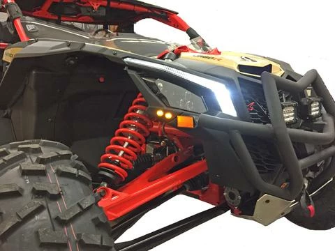 Every turn signal kit for the Can-Am Maverick X3 comes with the option to upgrade from 3/4″ Amber indicators to Signature Light replacements featuring dual-color, dual-functioning, lights. The OEM lights come with just three White LEDs at the base that shines up the light “brow”. Our replacement clear OEM style Signature Lights come with dual-colored White/Amber LEDs and allow for a clean OEM look that functions both as a running light and a turn signal.