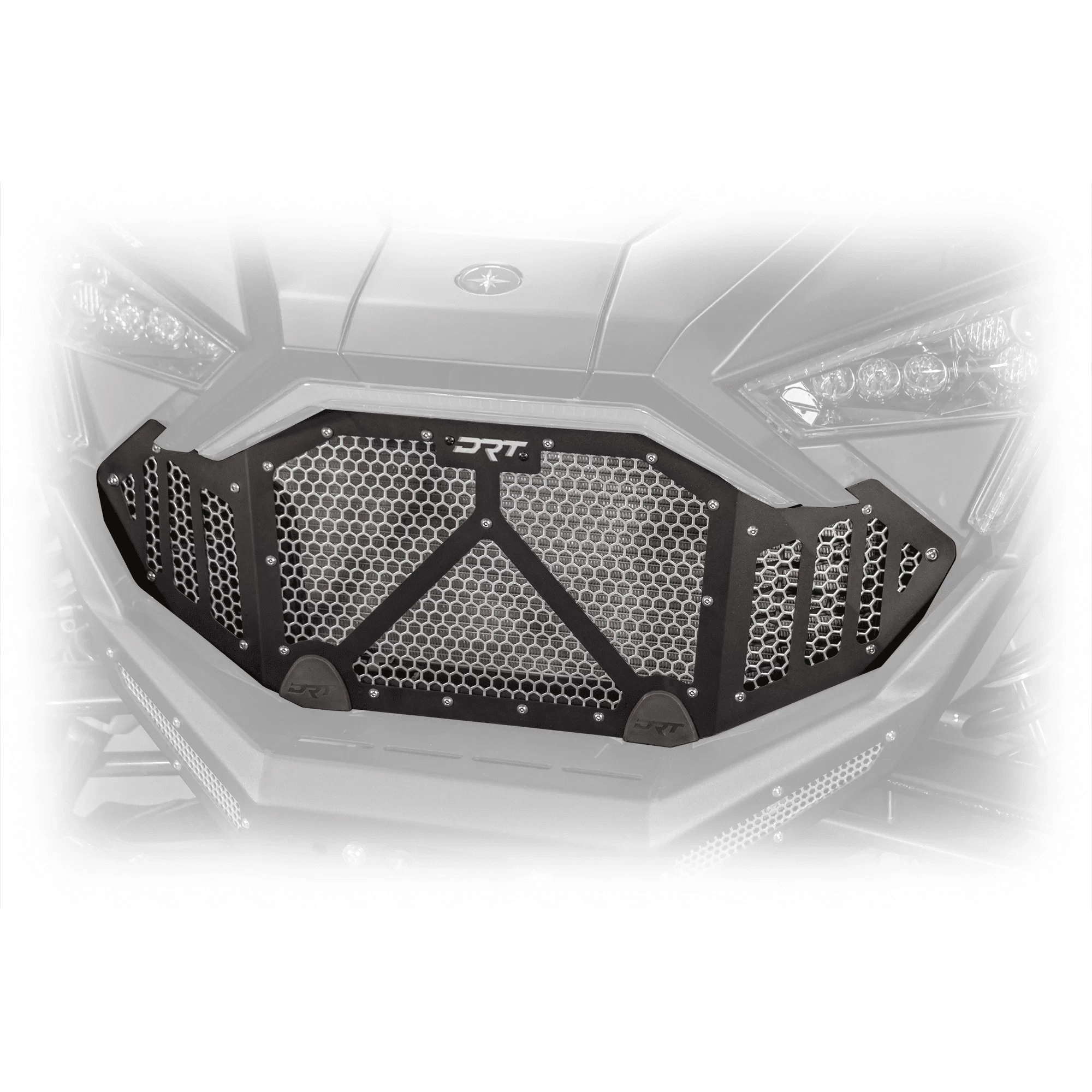 The DRT Motorsports Polaris RZR Pro R / R4 Aluminum grill is an essential item to complete your UTV. The DRT Pro XP grill is laser cut from aluminum for a precise fitment and no drill install. The DRT 20005FG03101 better protects the radiator from small rocks and mud while still allowing enough airflow to the radiator for cooling. The DRT Motorsports Pro R Aluminum Grill is a must for riders who want better protection and aggressive styling for their Pro R.