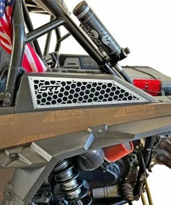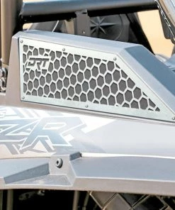 The DRT Motorsports Polaris RZR XP 1000 Turbo and Turbo S Intake Vent Grills are an awesome way to upgrade the look of your RZR XP Turbo or Turbo S. The kit comes with 2 grills to install over your Pro XP’s factory frog skin mesh filter. The DRT vent grills come in raw aluminum to allow for easy color matching to your vehicle’s color scheme. The RZRXPTIV1 are laser cut to exact dimensions for precise fitment and an extremely easy install.