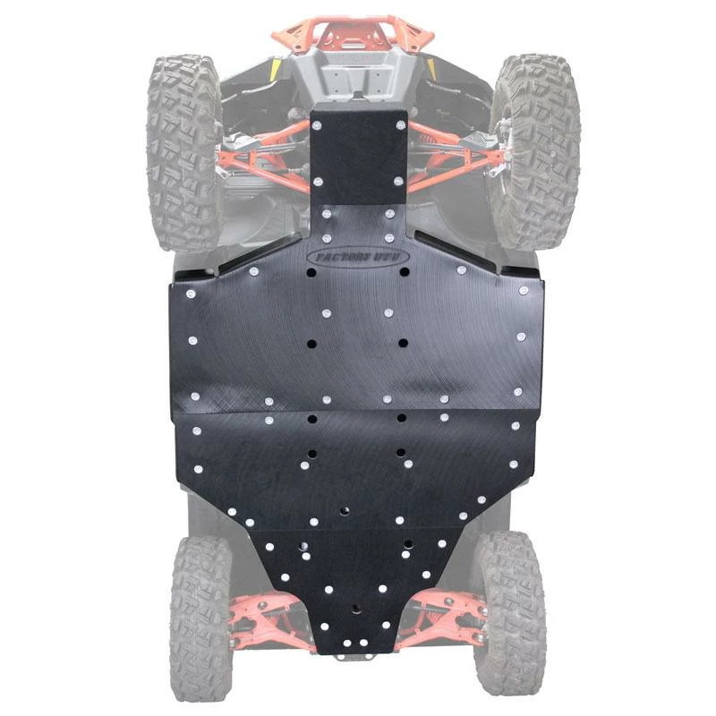 Can-Am Defender UHMW Skid Plate. Factory UTV’s Can-Am Defender UHMW Skid Plates are the gold standard for UTV protection systems. OEM skid plates simply do not satisfactorily protect the underside of your UTV under normal off road operation. With items as important as your fuel tank and hydraulic lines right above the skid plates an alternative to the OEM skids is imperative for fun and safe off roading. Factory UTV has the answer with skid plates constructed from UHMW (Ultra-High Molecular Weight) plastic. Significantly lighter than aluminum, FUTV skids and A-Arm guards offer full protection for the under carriage of your UTV. UHMW is tough, wear resistant plastic that combines an incredibly low coefficient of friction with outstanding impact strength, and will outwear carbon steel 10 to 1. Unlike aluminum, UHMW also has memory, meaning after a big impact hits aluminum will bend ,gouge and break while UHMW maintains it’s original shape. These skid plates are very TOUGH! Protect your investment today!