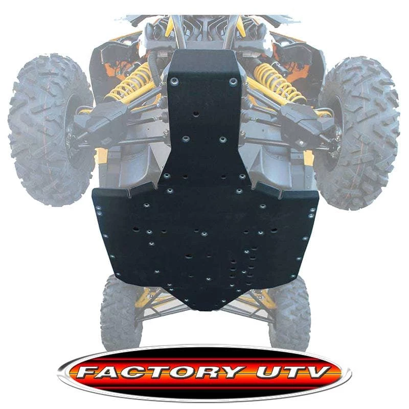 Can-Am Maverick Three Eights UHMW Skid Plate. Factory UTV’s UHMW Skid Plates are the gold standard for UTV protection systems. OEM skid plates simply do not satisfactorily protect the underside of your UTV under normal off road operation. With items as important as your fuel tank and hydraulic lines right above the skid plates an alternative to the OEM skids is imperative for fun and safe off roading. Factory UTV has the answer with skid plates constructed from UHMW (Ultra-High Molecular Weight) plastic. Significantly lighter than aluminum, FUTV skids and A-Arm guards offer full protection for the under carraige of your UTV. UHMW is tough, wear resistant plastic that combines an incredibly low coefficient of friction with outstanding impact strength, and will outwear carbon steel 10 to 1. Unlike aluminum, UHMW also has memory, meaning after a big impact hits aluminum will bend ,gouge and break while UHMW maintains it’s original shape. These skid plates are very TOUGH! Protect your investment today!