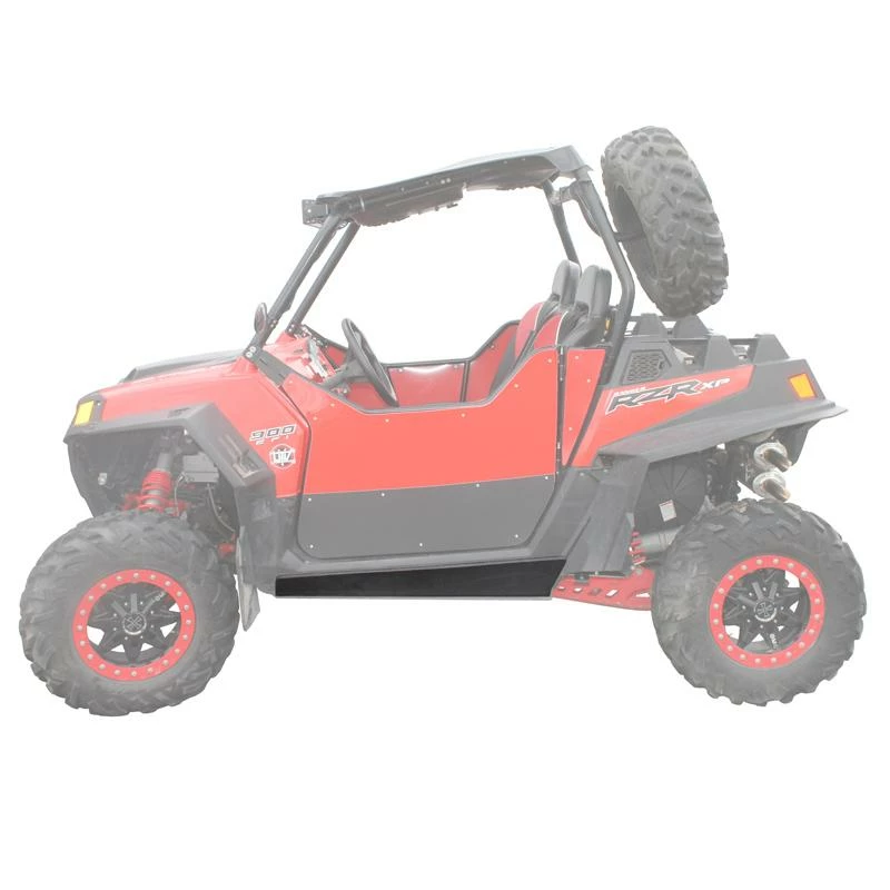 Factory UTV, the first name in UTV undercarriage protection introduces another industry first with their UHMW Rocksliders for the RZR XP 900. These sliders are constructed from ultra tough UHMW providing that rugged yet very slick UHMW protection to your vulnerable and exposed RZR rocker panels. These can be run with or without our skid plates and give you the protection you need without robbing you of that much needed ground or side clearance or the low hanging hardware found on the Polaris Rock Sliders. No drilling or cutting required, these bolt into existing holes. Combine them with our UHMW skid-plates and A-arm guards for the ultimate RZR protection package.