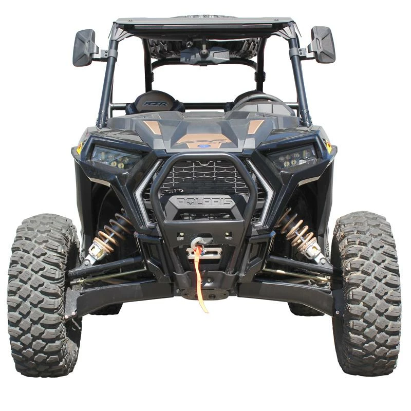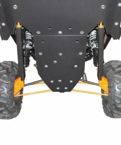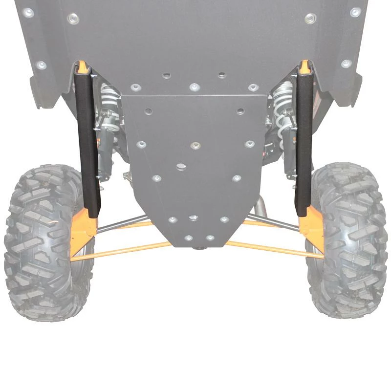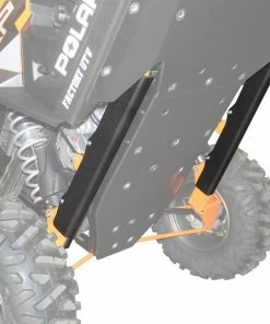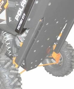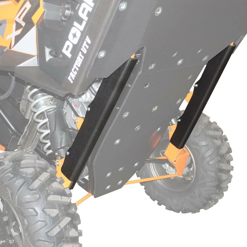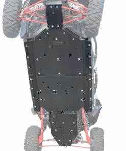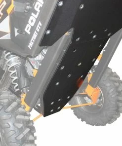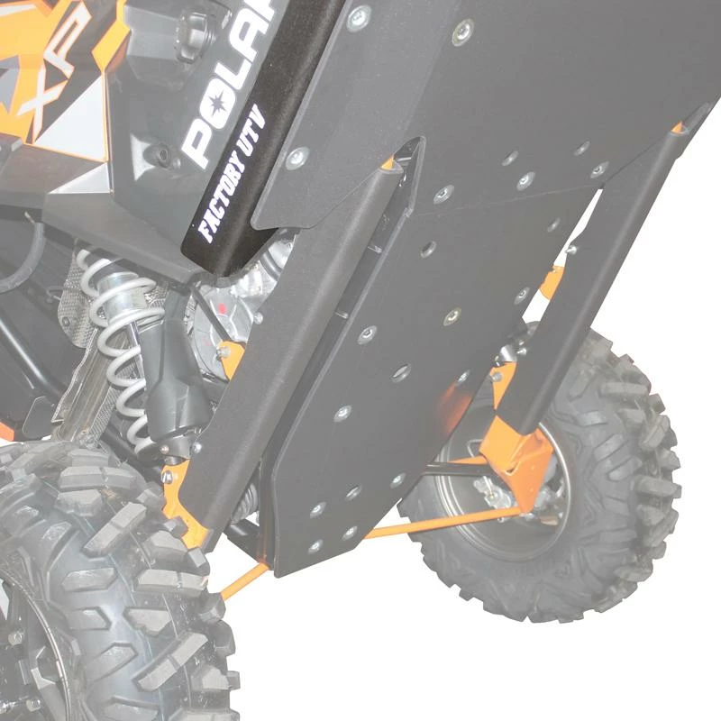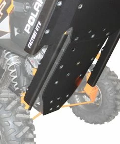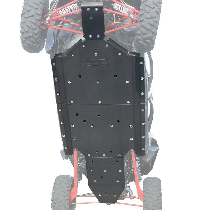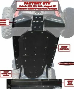Factory UTV’s UHMW Skid Plates are the gold standard for UTV protection systems. OEM skid plates simply do not satisfactorily protect the underside of your UTV under normal off road operation. Our Factory UTV Polaris RZR XP 1000 UHMW Ultimate Skid Plate Package protects your assets. We’ve also added an X-Brace option under the engine/trans area of the RZR XP. “ ½” or 3/8” UHMW rear skid with an 1/8” inch 6061 high strength aluminum backing plate, X brace aluminum backing plate is installed in between UHMW skid and chassis frame, and limits the amount of impact absorbing skid plate flex in the rear vital areas. If your going to play hard in your RZR XP, you’ll need the added X-Brace protection. You save when you purchase the Ultimate Package which includes Main Skid, A-Arm Guards, Trailing Arm Guards and Rock Sliders. UHMW (Ultra-High Molecular Weight) plastic is significantly lighter than aluminum, FUTV UHMW skids and guards offer the best protection available for the undercarriage of your UTV.