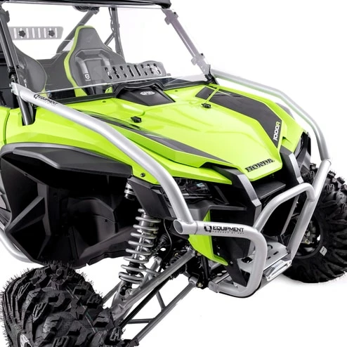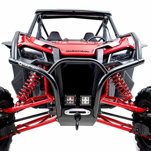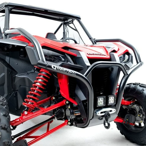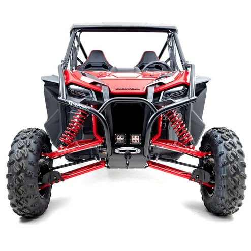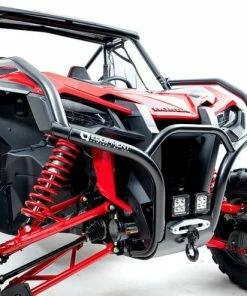 The HMF Exo Bars for the Honda Talon 1000R/X offer an extra layer of protection and reinforcement to the front of the machine. Constructed from .095″ wall steel tubing, the Exo Bars are designed to work like an exoskeleton, linking the HMF Defender HD Front Bumper and the factory roll cage together for additional protection and strength. Ideal for owners looking for the ultimate strength and protection, the Exo Bars install easily between the HMF Defender HD Front Bumper and the factory cage with the included hardware. No additional, cutting, welding, or modification is required to install, and will not interfere with hood removal. Available color options will match with the manufacturer’s color scheme.