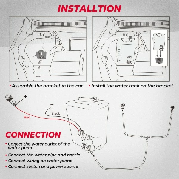 Kemimoto universal car windshield washer pump universally fits into the bottom of the fluid tank and this windshield tank fits well with most washer pumps and is simple to install.