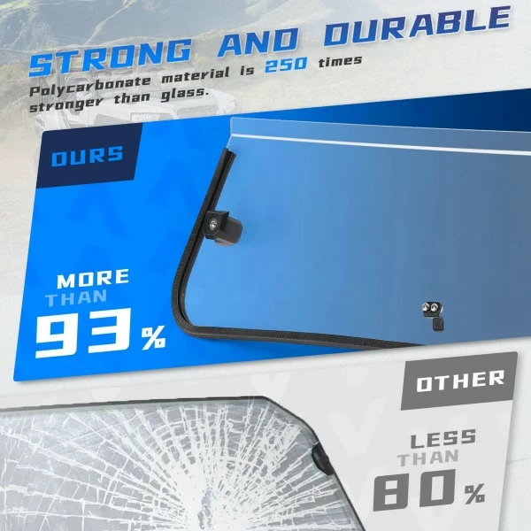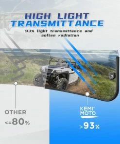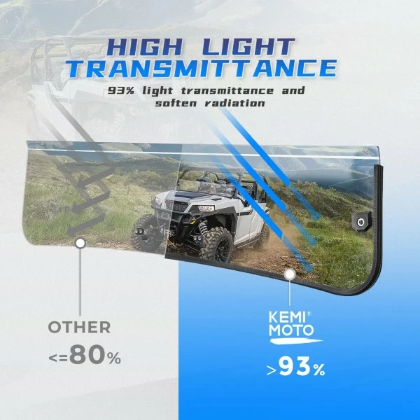 The Kemimoto half window is made of an environmentally friendly PC, which can ensure 93% light transmittance and help soften radiation. Get ready to enjoy a clear view while driving of your utv!