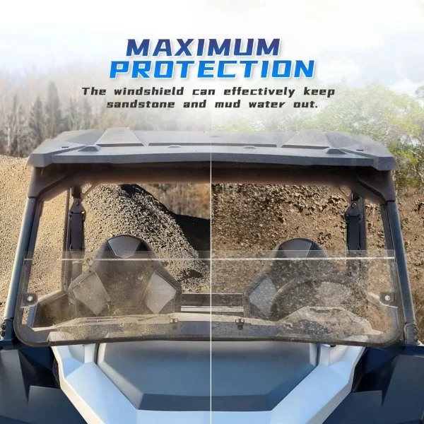 The half windshield protects you and your passengers from splashing mud, debris debris, rain, and vehicle spray away from riders.