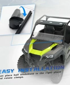 Just place the windshield in front frame and rotate clamps to ensure the half windshield, which is stable and sturdy. TIPS: Give away all installation hardware.