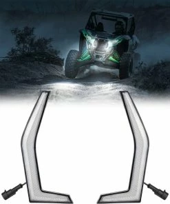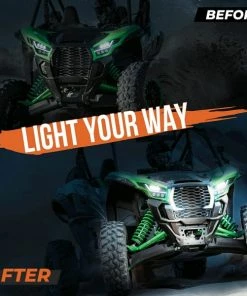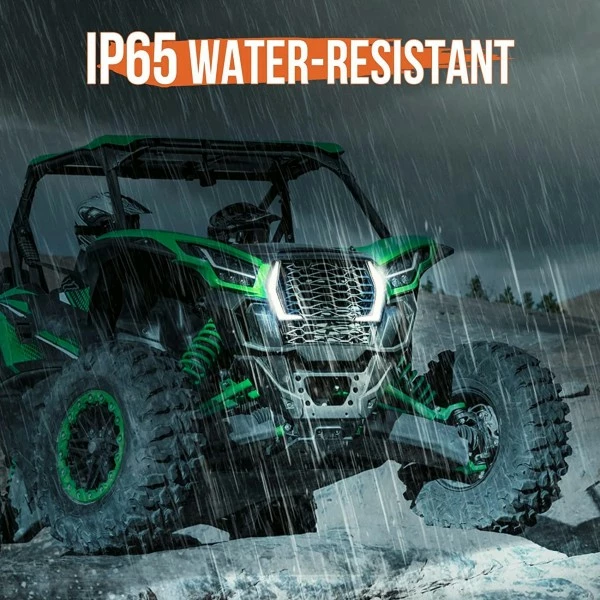 The KRX LED fang lights is made of strong ABS back shell and a polycarbonate Krx headlights. The hard ABS shell ensures that it will not be damaged even if it is scratched by branches while driving.