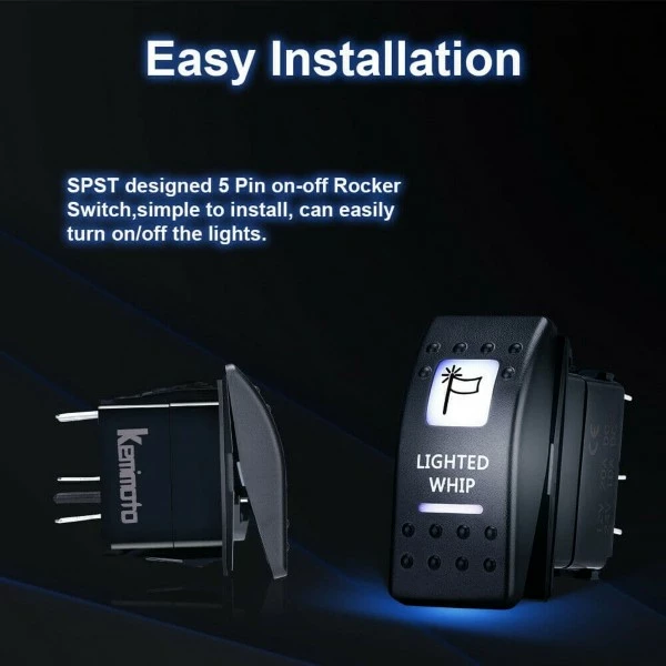 Kemimoto Lighted Whip Illuminated Marine Switch 12V
