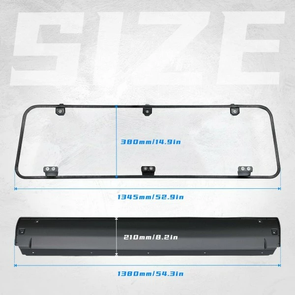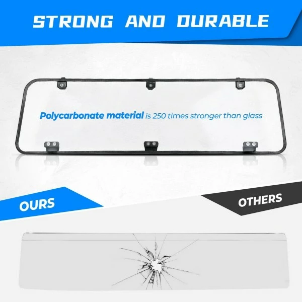 Rear windshield can protects you and your passengers from splashing mud and debris. And eliminates the suction generated by the front windshield!
