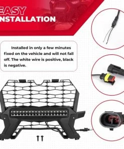 Installed in only a few minutes. The white wire is positive, black is negative. Designed in the OEM style, the light bar mesh grill will be fixed to the vehicle.