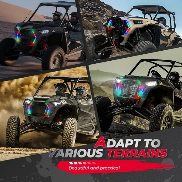 More than 366 striking patterns will surely attract the attention of passersby. There are 32 brightness levels and 10 flash speed options of the fang lights. Remote control with speed, color mode, intensity and strobe functions. RGB steering chase lights, 20 colors, 300 patterns to choose from.Turn to the music light mode, flashing with the rhythm of the music, standing out in the crowd.