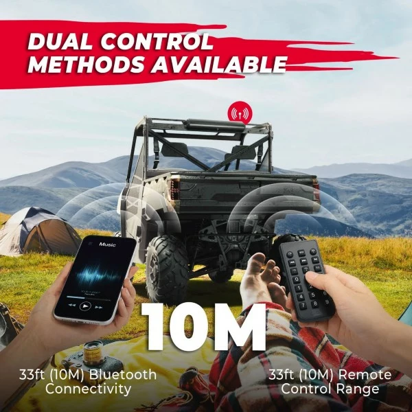 Plus, you can connect your phone or tablet to the Kemimoto universal UTV soundbar to play music directly from the device wirelessly.