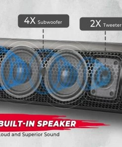 - Subwoofers and Tweeters Included: Universal outdoor utv soundbar comes with 6 speakers and has 500 watts of total power output. There are four 4-inch subwoofers included and two one-inch tweeters. It is an outdoor soundbar that will allow you to enjoy your favorite music with the highest audio quality.