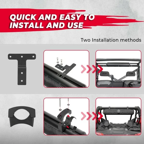 Kemimoto UTV Speakers with two types of mounting brackets: