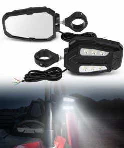 Kemimoto Universal Side Mirror with LED Spotlight for 1.75″ – 2″ Roll Cage