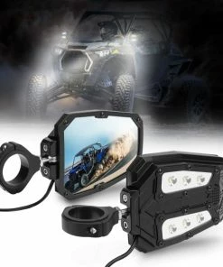 Kemimoto Universal Side Mirror with LED Spotlight for 1.75″ – 2″ Roll Cage
