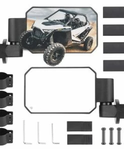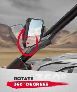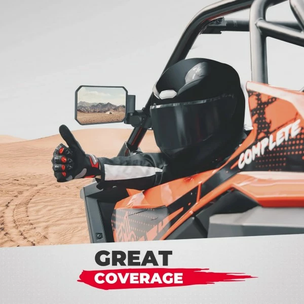 You can adjust the UTV side mirror horizontally or vertically for desired visual angle. With a “breakaway” feature., when riding the trails, they fold away if they encounter a branch but are sturdy enough for high speed on the road—No vibration at idle.