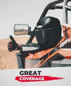 These side view mirror dimensions are 3.7″ wide by 7.5″ tall, with a sleek and stylish design that looks great on all UTVs and is big enough for maximum view, even over harsh terrain and whoops.