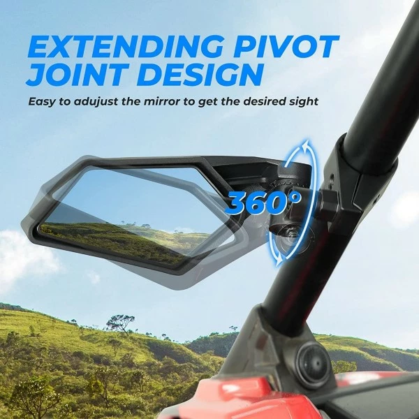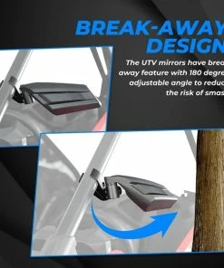 Break-away Design:Â This UTV side mirrors can fold back while hitting branches or other obstacles to avoid damage with the 180 degree adjust angle.