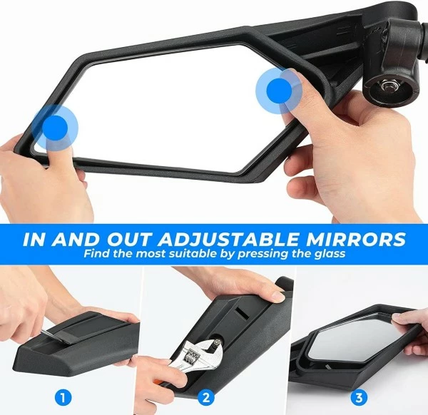 Easy Installation:Â These RZR mirrors are easy to mount, you just need to screw the bolts to fix the bracket on the roll bar, and the installation accessories are included in the package.