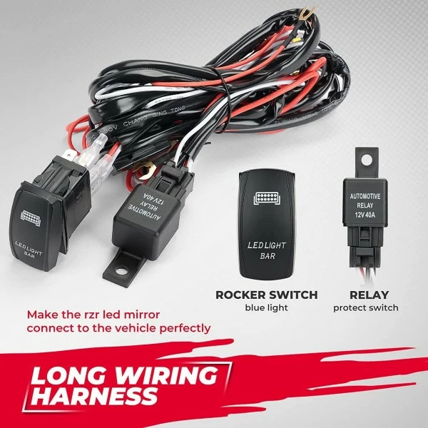 LONG WIRING HARNESS: The long wiring harness makes the rzr led mirror connect to the vehicle perfectly. The relay can protect switch and extend switch life.