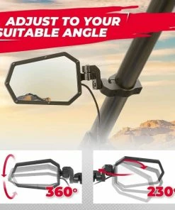 MULTI-ANGLE ROTATION: The rzr side mirror can be rotated up and down 360 degrees and swung front and back about 230 degrees. Ultra-thin clamp design can be installed on the vehicle with the windshield.