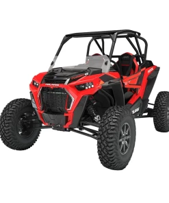 The RZR XP Turbo S Half Windshield was designed to fight off the wind, rocks, and debris. The design shields you from wind and debris like a full windshield but doesn’t collect mud or dirt so you can always see what lays ahead. New and improved Lock & Ride Technology means it installs easily, without hardware or tools- so you can get out and ride sooner.