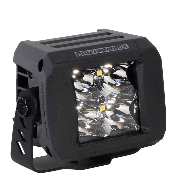 Pro Armor 2″ x 2″ Cube Spotlight. Light-weight with the highest quality LED, cube lights. Bezel-free and IPX67/69 certified waterproof and rustproof design. Wiring with Deutsch quick disconnect and Stainless U-shaped mounting system included. Cube lights can be positioned in a variety of locations on your vehicle. Sold Individually. 1,523 Lumens.