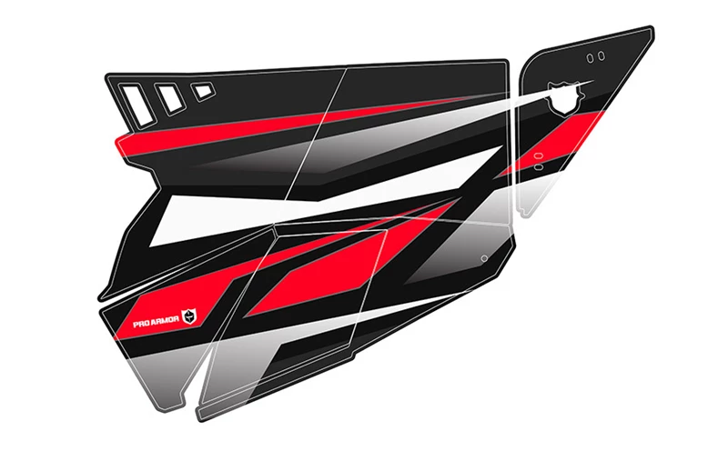 Looking for graphics to complete the look on your 2019 RZR and colorways for your Pro Armor RZR XP1K Stealth Doors. Look no further. This Kit Consists of a Black/Silver/Red color scheme this graphic kit will match the colors on your Black Pearl XP1K. Made from Arlon brand vinyl and backing for a strong application and withstand elements and fade.