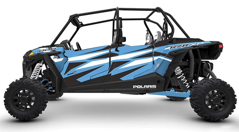 Looking for graphics to complete the look on your RZR and colorways for your Pro Armor RZR XP4 Traditional Paddle Latch Doors. Look no further. This Kit Consists of a Sky Blue/Black/White color scheme this graphic kit will match the colors on your Sky Blue & Ride Command XP4. Made from Arlon brand vinyl and backing for a strong application and withstand elements and fade.