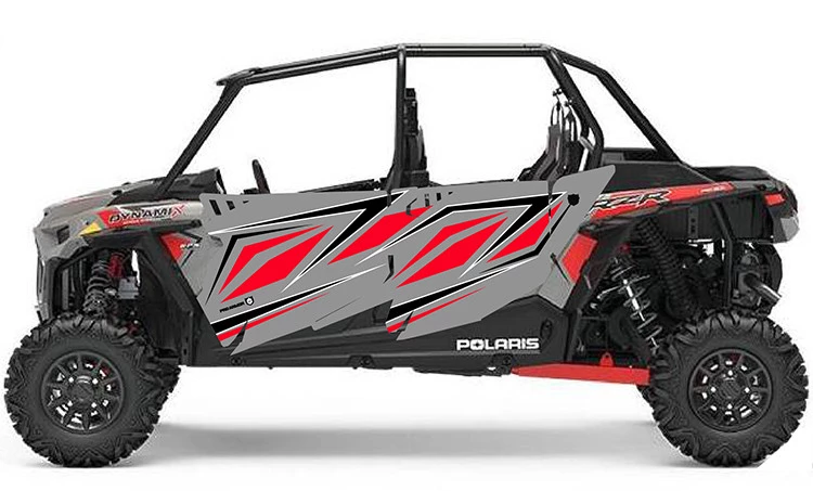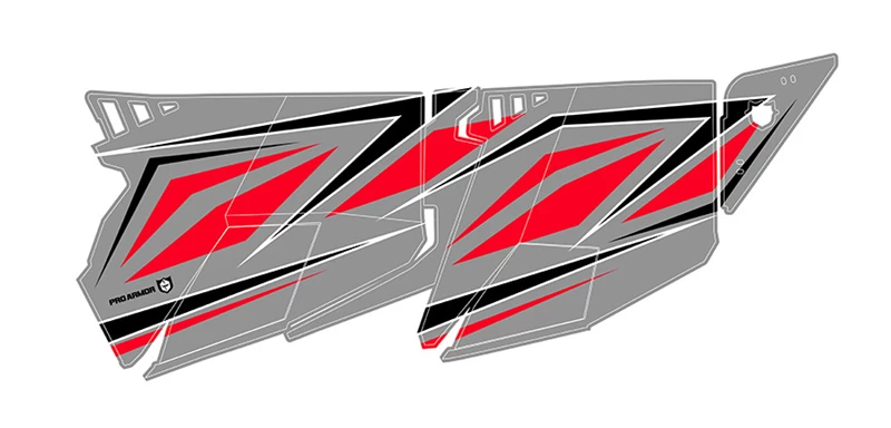 Looking for graphics to complete the look on your RZR and colorways for your Pro Armor RZR XP4 Turbo Stealth Doors. Look no further. This Kit Consists of a Grey/Red/Black color scheme this graphic kit will match the colors on your Ghost Grey Dynamix XP4 Turbo. Made from Arlon brand vinyl and backing for a strong application and withstand elements and fade.