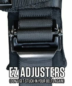 This 4 point harness with 3″ belts has sewn-in pads for comfort, all black hardware for cool styling, and EZ adjusters on the shoulders. The EZ adjusters allow you to adjust your shoulder straps quickly, even if they are dirty or muddy.