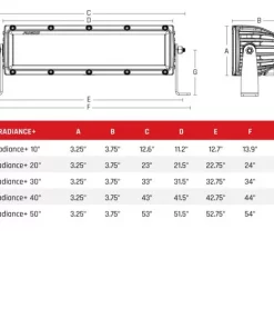 The RIGID Radiance Plus LED light bar is the perfect solution for those who want RIGID’s legendary quality at a level everyone can attain. Featuring RIGID’s improved LED technology, the Radiance Plus light bars deliver up to 35 percent more raw lumens than before. The RIGID Radiance Plus bars are built with the same high-grade aluminum alloy housing as RIGID’s legendary E-Series, but that’s where the visual similarities end. Inside, the Radiance Plus bars are feature-packed, with a black exposed circuit board, optimized forward projecting Broad Spot optics that combine the attributes of a spot and flood beam pattern. The Radiance Plus bars have built-in back-lighting available in white, amber, red, or blue. Large backlit RIGID branding plates further add to the unique look of the Radiance Plus light bar. The Radiance Plus light bars include a wiring harness and multi-trigger switch for a simple installation. The Radiance Plus LED light bars are for the customer who wants a truly custom look that RIGID is known for. Own The Night with RIGID.