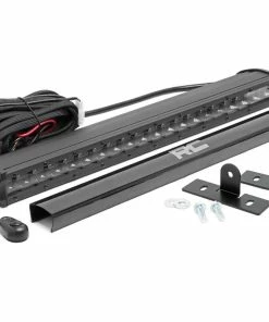 Parts: 20-inch Single Row LED Light Bar, Wiring harness, On/Off switch, Mounting brackets, Snap-on cover, Hardware