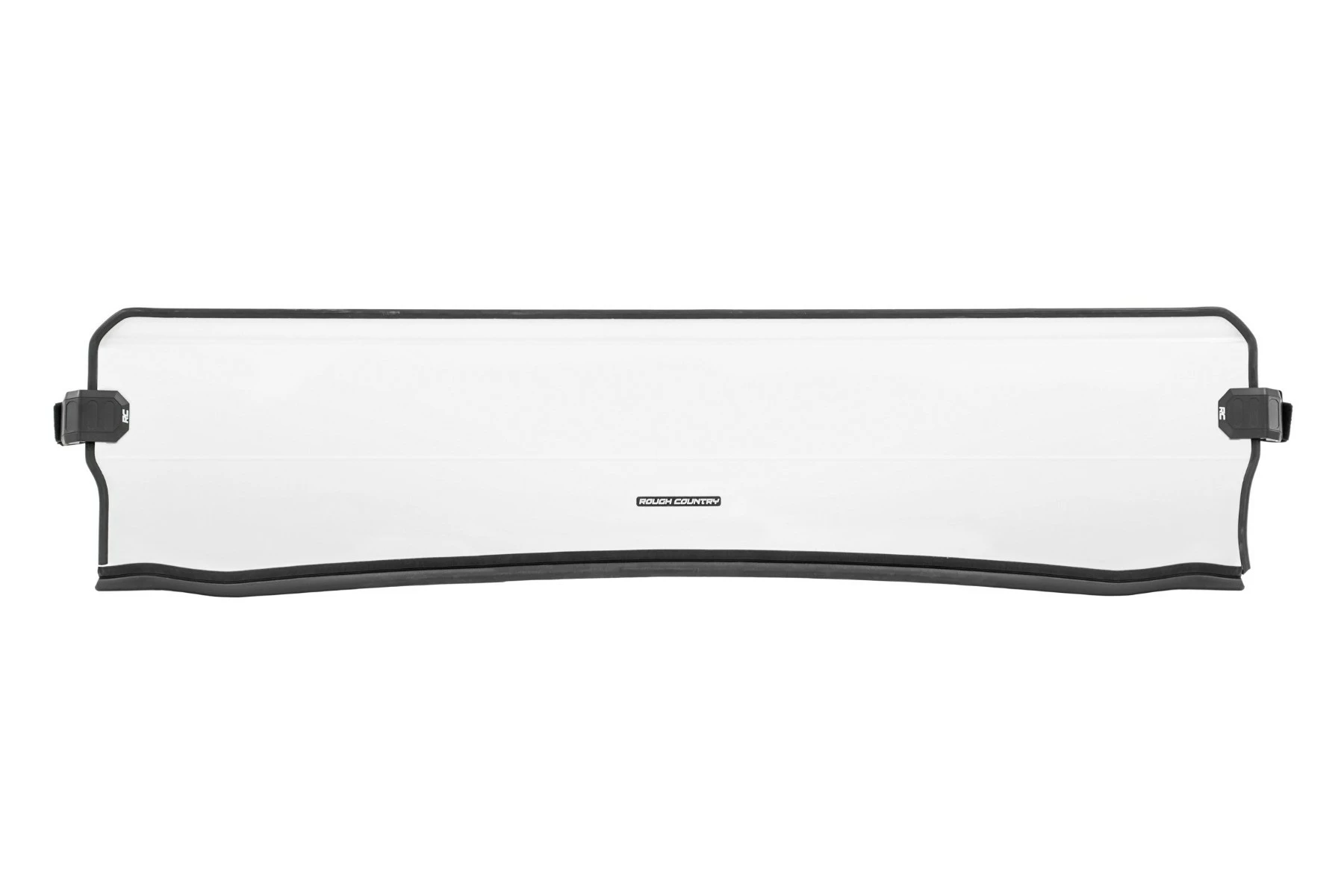 High-Quality Polycarbonate Construction. Rough Country UTV windshields are constructed from thick polycarbonate material that is precision cut for a perfect fit. The polycarbonate material provides an ideal combination of clarity, flexibility, durability that outperforms glass, acrylic, and other windshield materials.