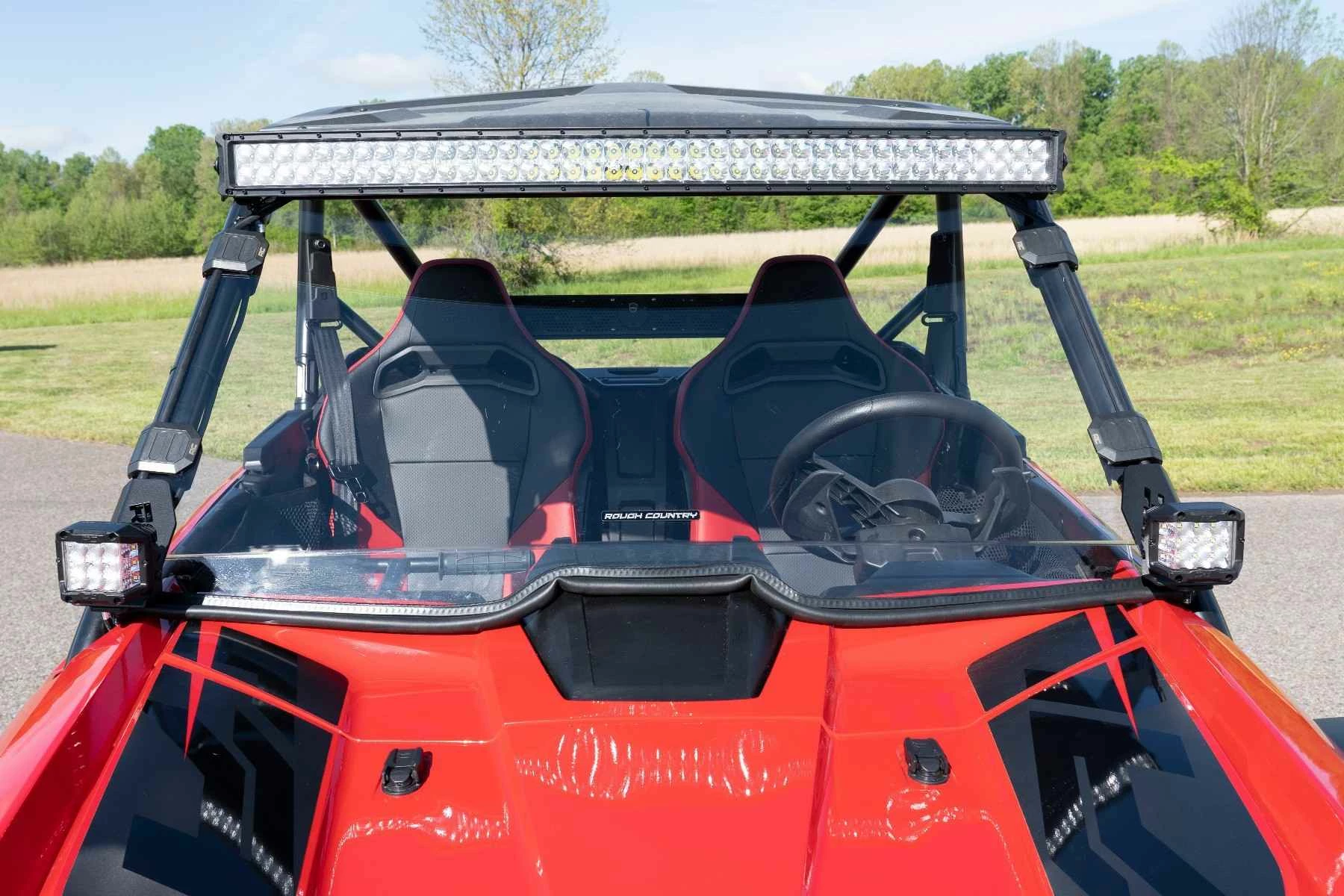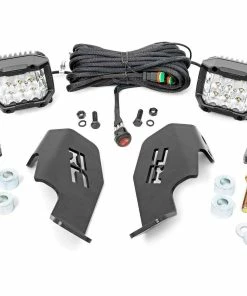 Rough Country’s LED kit is easy to install, it features a 100% bolt on installation process that mounts to the bottom of the roll cage for a quick and painless upgrade. There are several LED options to choose from, the standard 2-inch black-series LEDs with or without daytime running light function, or, our popular 3-inch Wide Angle Osram LED cube.