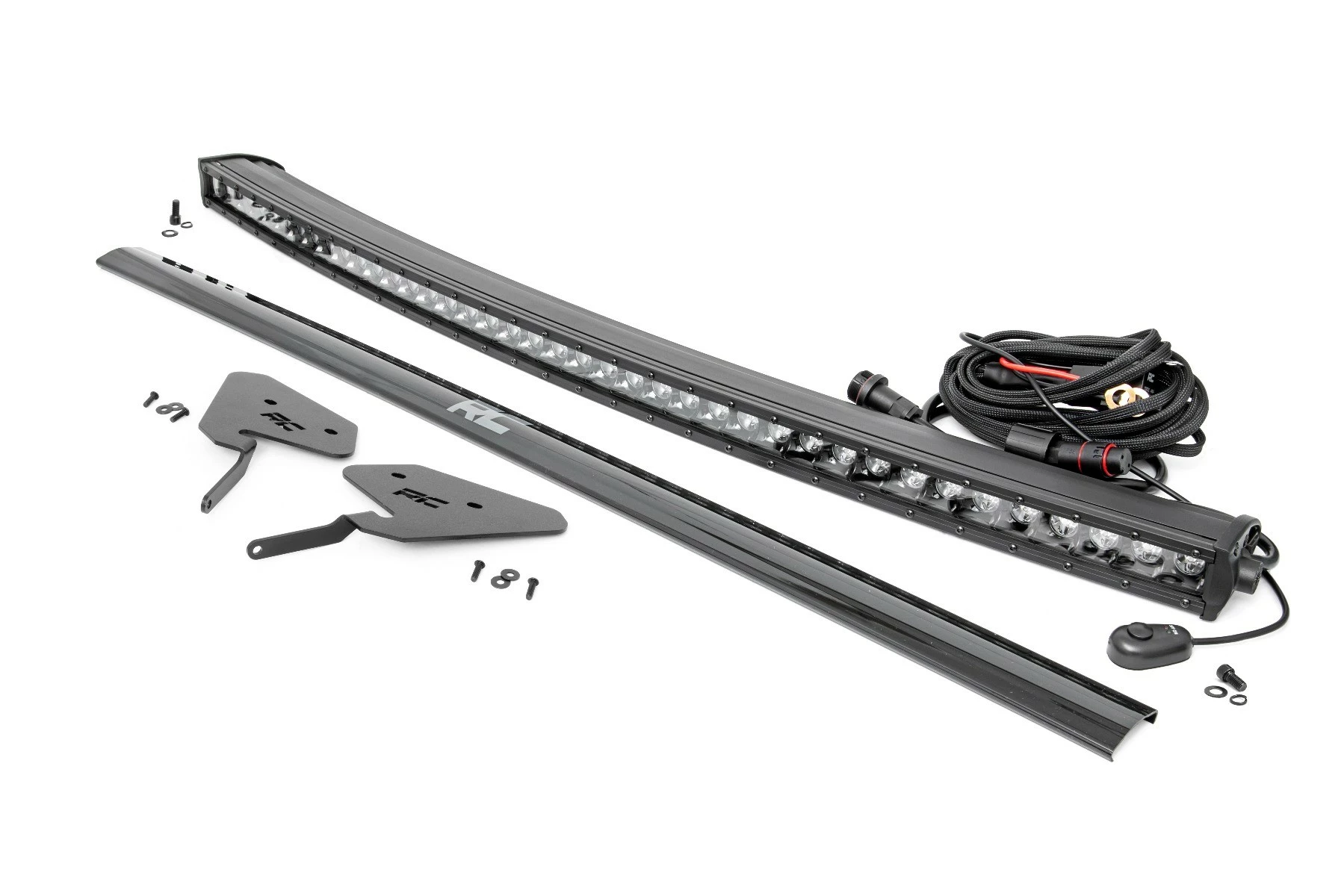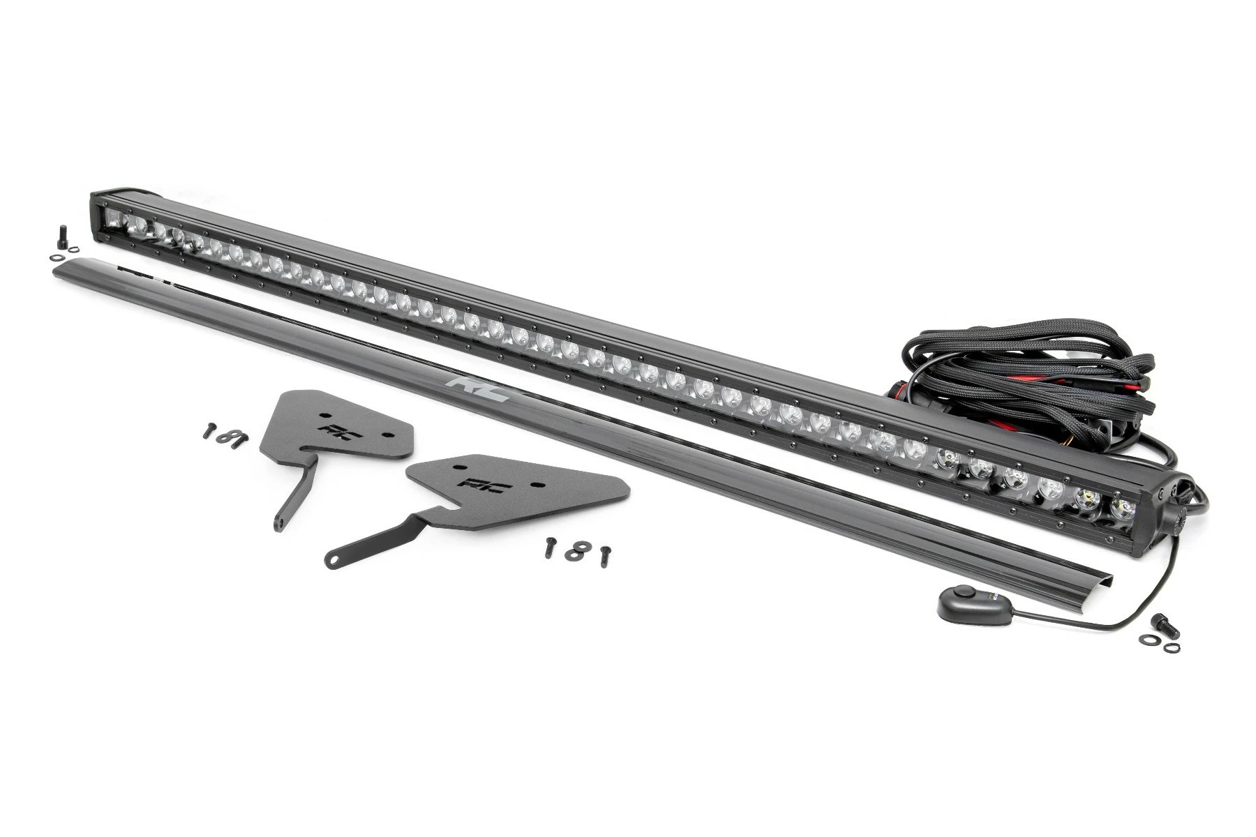 Parts: 30″ LED Light Bar, Wiring harness, On/Off switch, Mounting brackets, Snap-on cover, Hardware