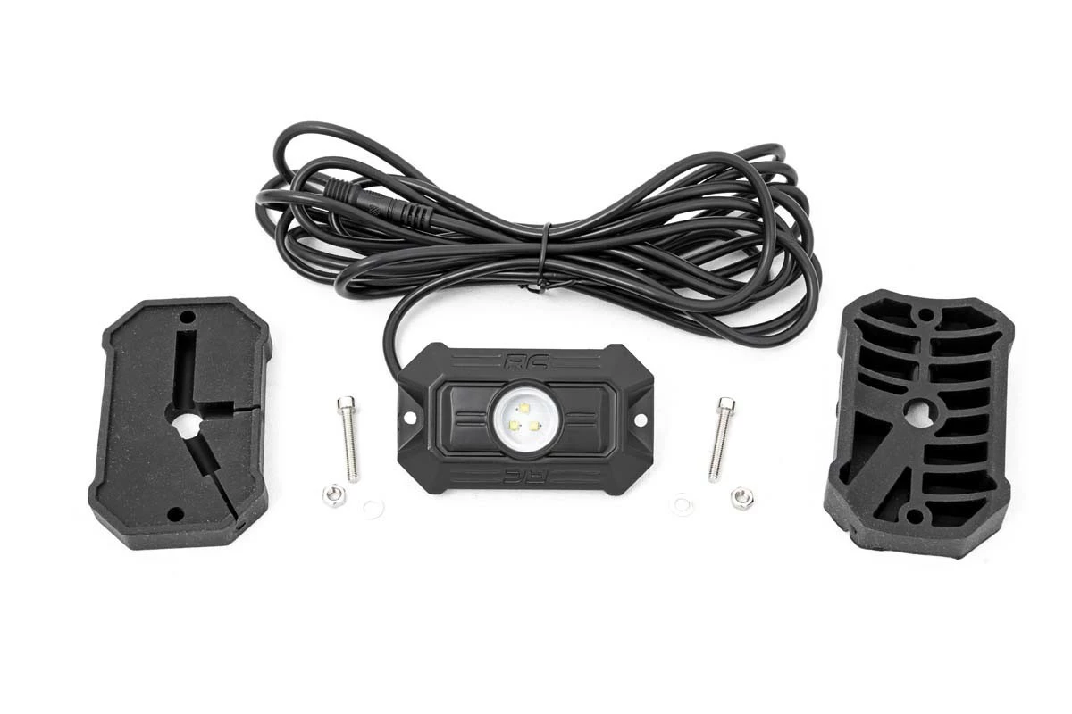 COMMAND THE DARK with Rough Country’s 4-pod Deluxe LED Rock Light Kit! These waterproof, ultra-bright Rock Lights include both curved and flat mounting options, allowing you to mount to any surface with ease!