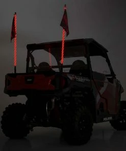 Each unit is designed for maximum durability and display, with an IP67 waterproof construction that’s built to ward off water, mud, and the elements for a long lifespan of cool colors. The innovative quick-release base allows you to effortlessly remove the whip lights from your UTV at any time while keeping the wiring intact. Each whip light also features a removable Rough Country flag mounted to a swivel bracket.