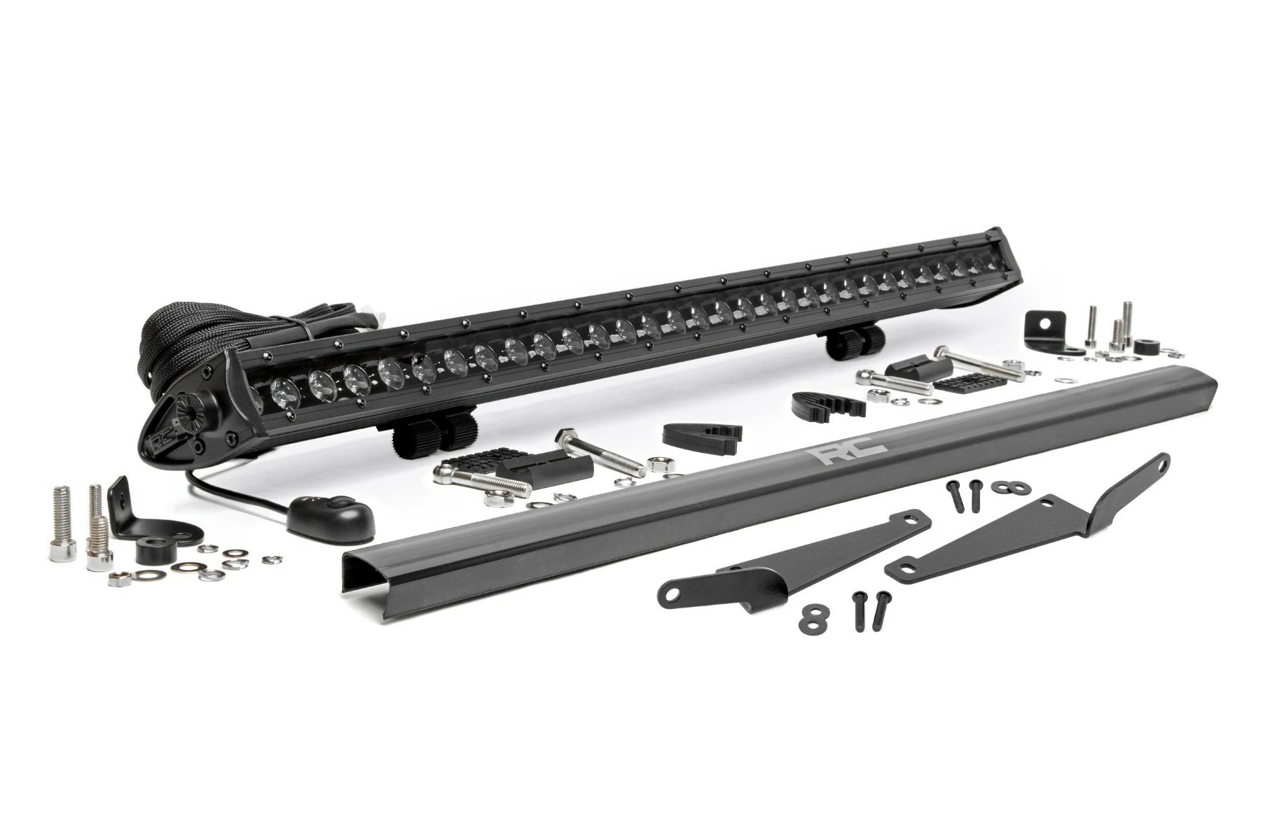 Installation and Warranty. Rough Country’s 30-inch LED Upper Windshield Kit includes installation instructions and necessary hardware. In addition, this product is backed with a limited lifetime replacement warranty for manufacturer defects. As such, the product is protected from structural and workmanship damage after the date of purchase. With our industry-leading warranty, give yourself peace of mind when using Rough Country’s products!