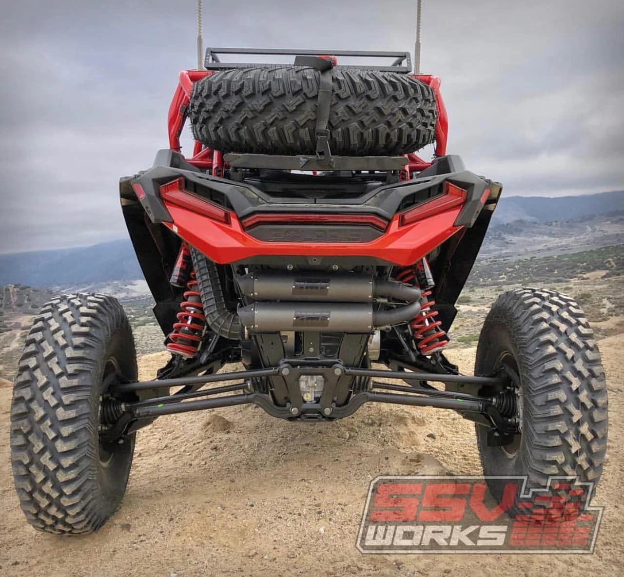 MUST ORDER TIRE STRAP SEPARATE. FITS UP TO A 35 SPARE WITH STOCK CAGE, SDR PRE-RUNNER CAGE, SDR SHORTY CAGE. AND MOST CAGES WITHOUT A REAR BUMPER