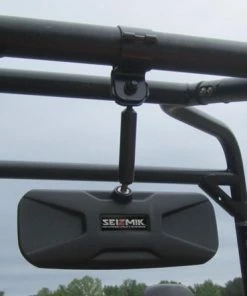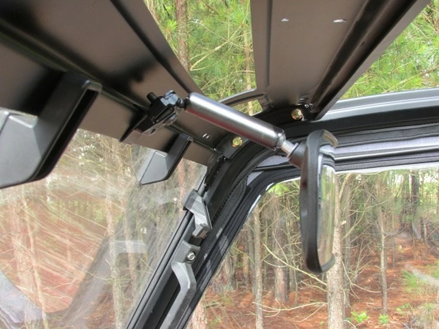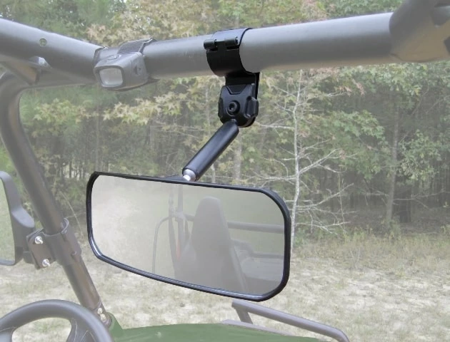 The wide angle rearview mirror is the perfect rearview mirror for UTVs. It has an incredible range of adjustments. The double ball joint allows the rider to position the mirror in any configuration they choose and the friction pads inside the ball joints keep the mirror from moving on rough trails. The oversized convex viewing surface reduces vibration and allows the rider to see anything happening behind them. The all steel clamp, shaft and bracket create a heavy duty mirror that can really take a beating.